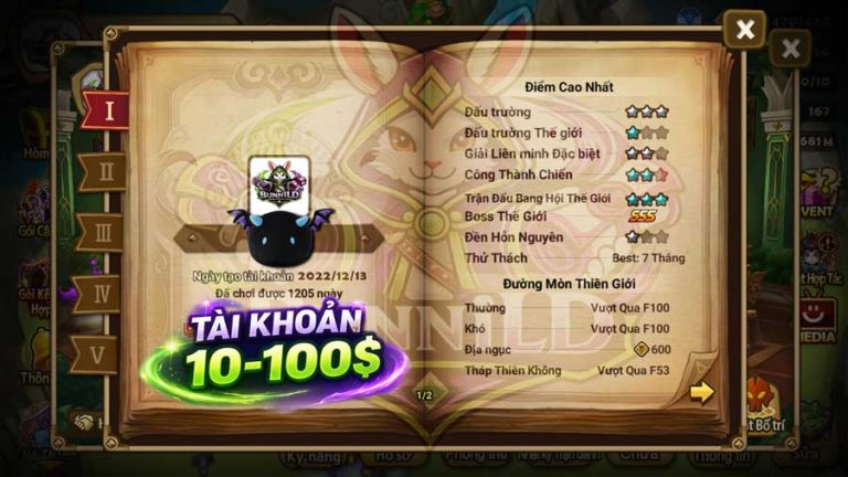 Tài khoản 10 - 100$